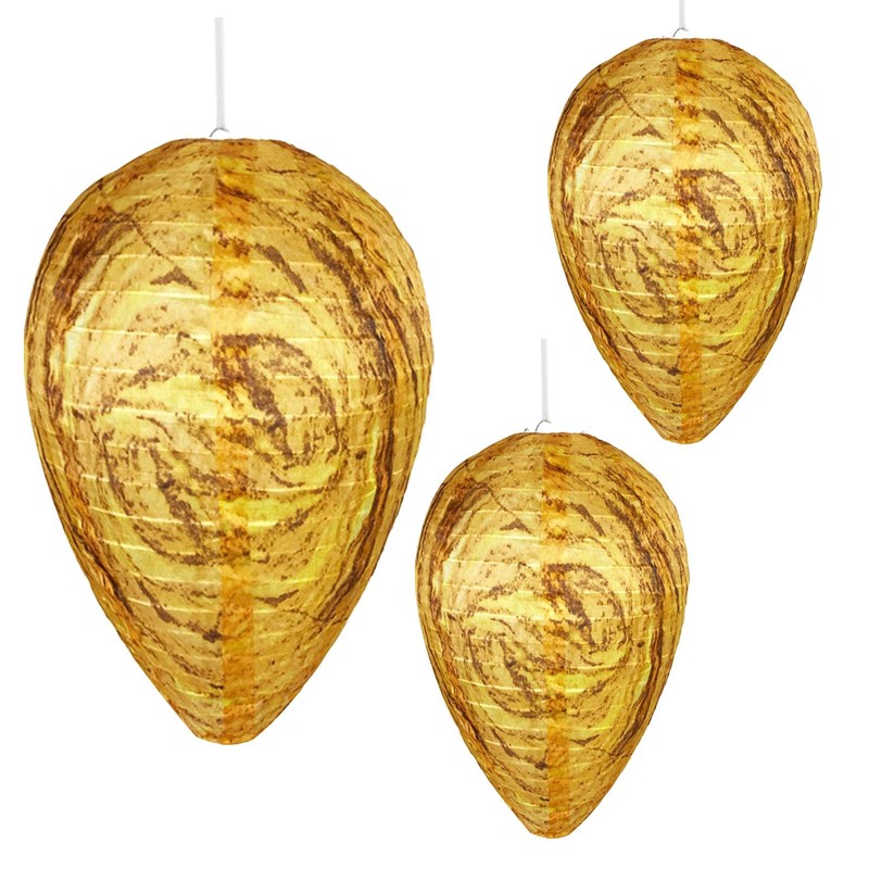 Wasp Nest Decoy, 3 Pack Paper Hives Hanging Fake Wasp Nest