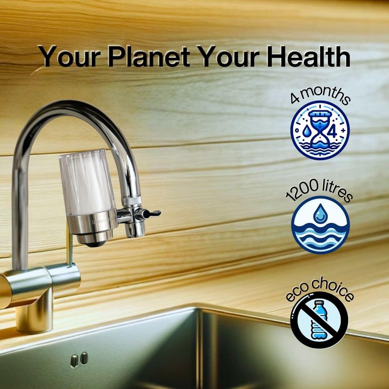 - PURE AND GREAT-TASTING WATER: This water filter uses activated carbon from eco-friendly coconut shells and diatom ceramic, both leaders in purification. Designed to effectively remove chlorine, heavy metals, sediments, microplastics, bad odours, and unpleasant tastes, it ensures the retention of essential minerals