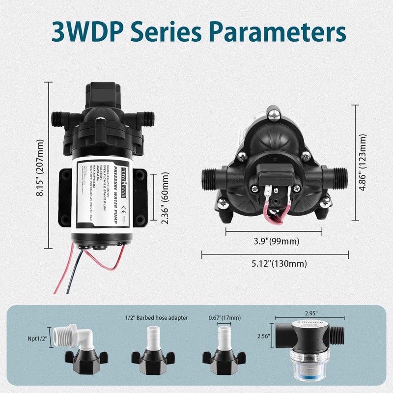 WASSERMANN RV Pump, 12V Self-priming RV Water Pressure Pump 4.0GPM 45PSI with Pressure Switch, for RV Marine Camping Yacht Garden