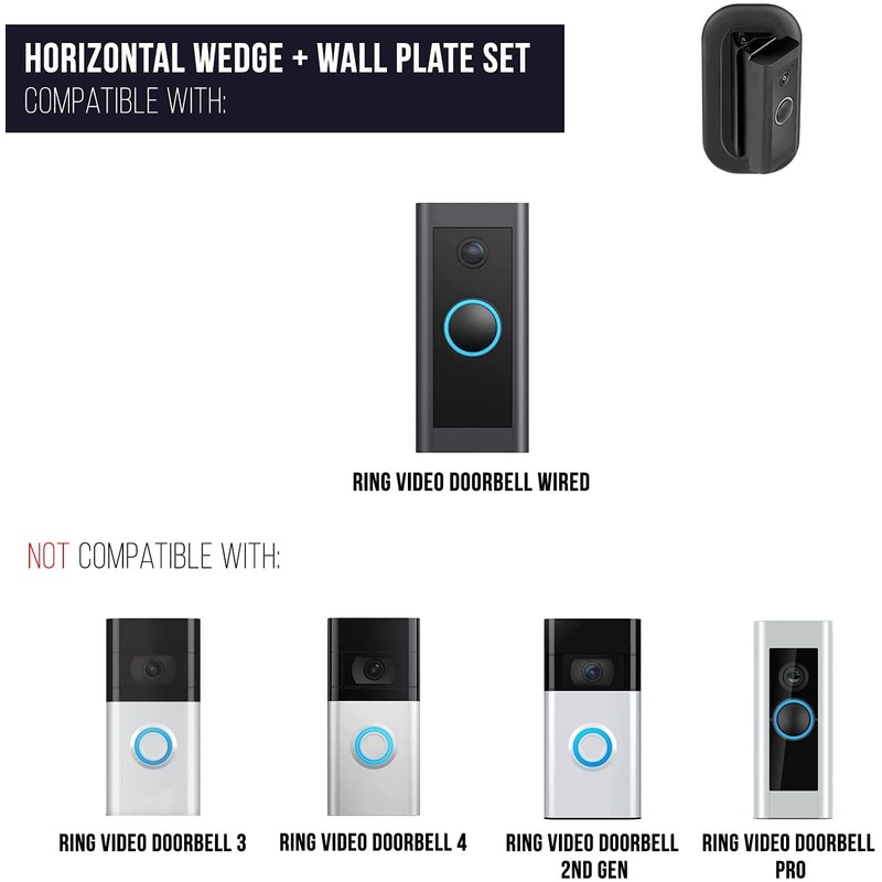 Wasserstein Horizontal Adjustable Angle Mount & Wall Plate (35° to 55°) - Compatible with Ring Video Doorbell (Wired)