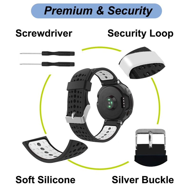 - 【Multiple Colors】Providing multiple colors to meet your different fashion outfit, the forerunner 235 band fearless of sweat accumulation and stimulation, makes your sport watch look more fashionable.