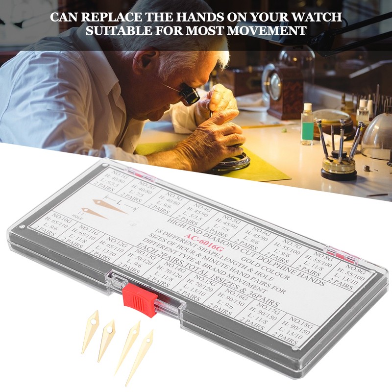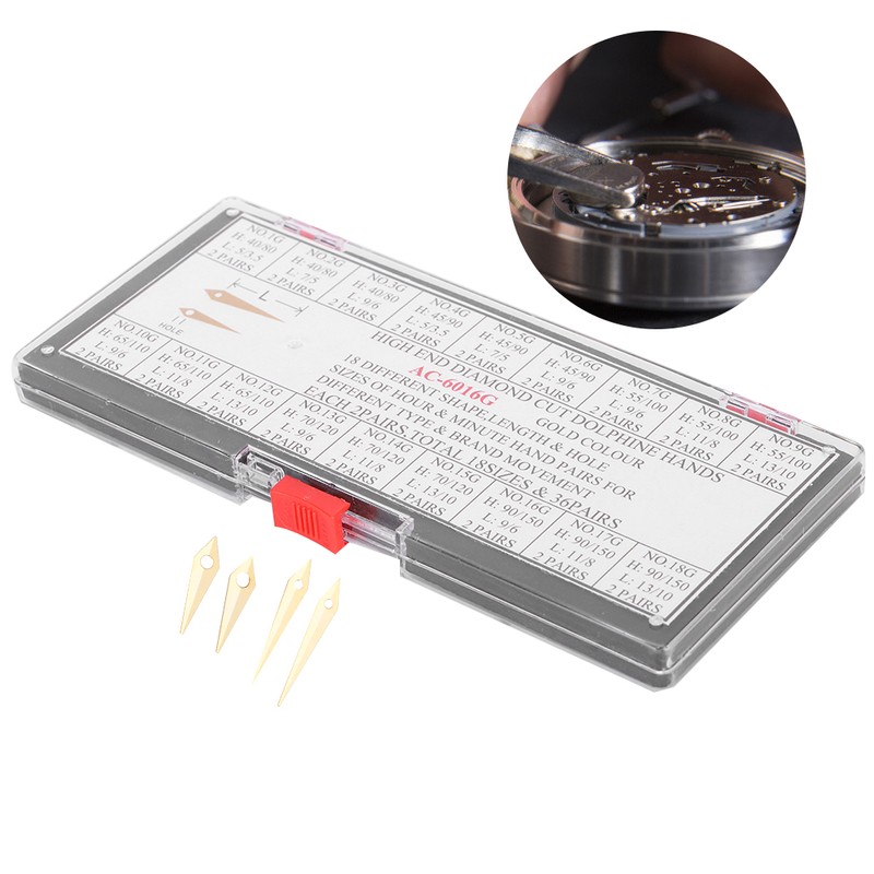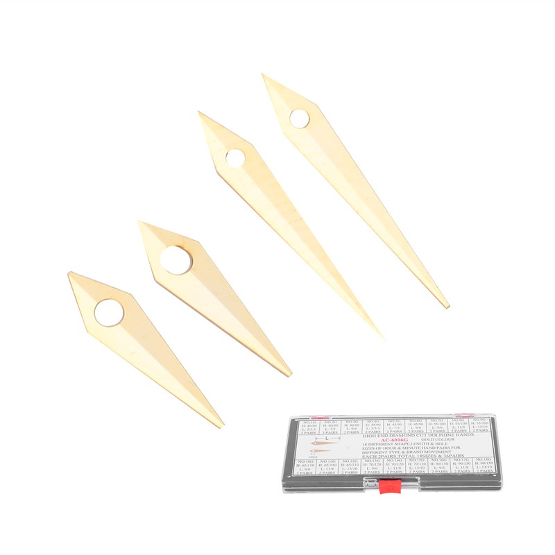 1、Excellent metal material, durable and reliable in use, having long service time. 2、Small and light, unique, make your watch more delicate, wonderful accessory. 3、You can replace the hands on your watch and bring your watch back to life. 4、Including hour and minute watch hands, meeting your different needs. 5、Suitable for watchmakers and watch repairing workers to use.