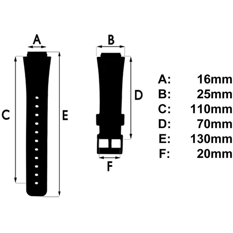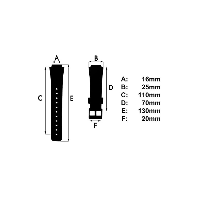 - Width at the point where it attaches to the watch - 16mm, Width at the widest point - 25mm