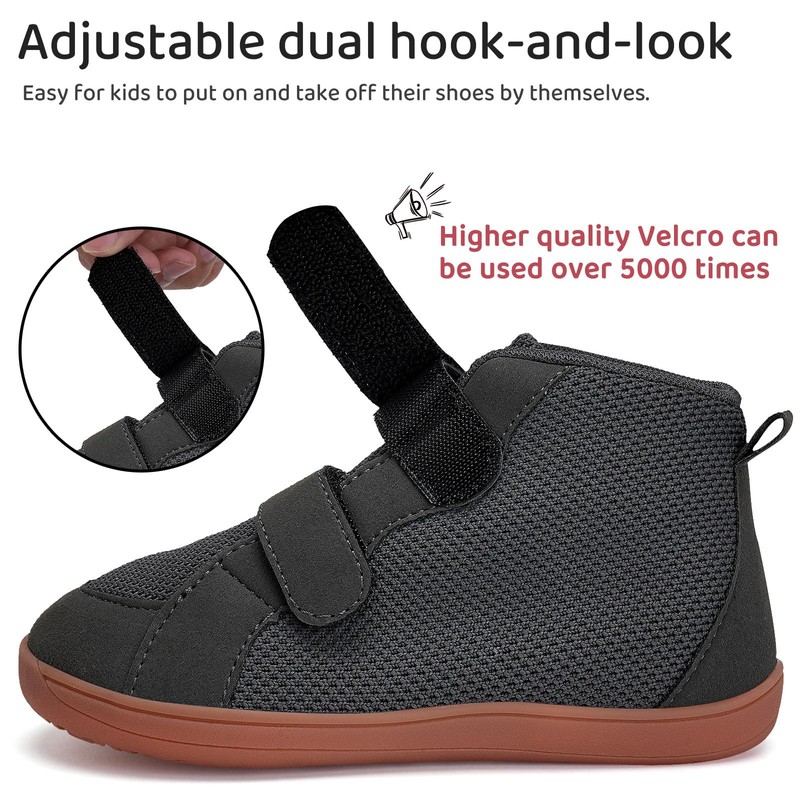 - Breathable Fabrics: With a breathable upper and comfortable insoles, the kids barefoot shoes provide optimal ventilation. The Toddler high top sneakers feature a minimalist design that are both stylish and versatile, perfect for any outfit or occasion. Whether your child is walking, running or jumping, these shoes offer unmatched comfort for all-day wear.