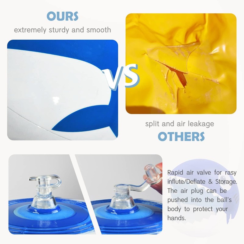 - Easy to inflate: Our inflatable ball uses hot press splicing technology, extremely robust sewing to avoid splitting or air leakage, and the definitely round shape ensures an extremely better playing experience. Simply lower the air pump into the hole and it is ready to inflate! (Note: air pump not included)