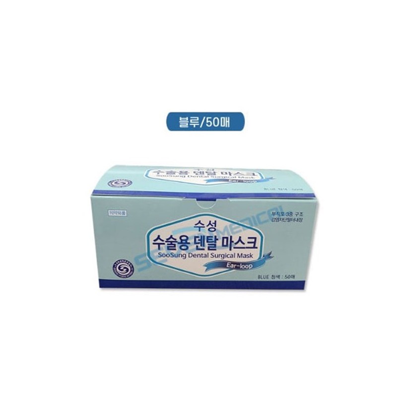 Water-based surgical dental mask 50 sheets blue, white, white / 수성 수술용 덴탈마스크 50매입 블루 , 화이트 , 화이트