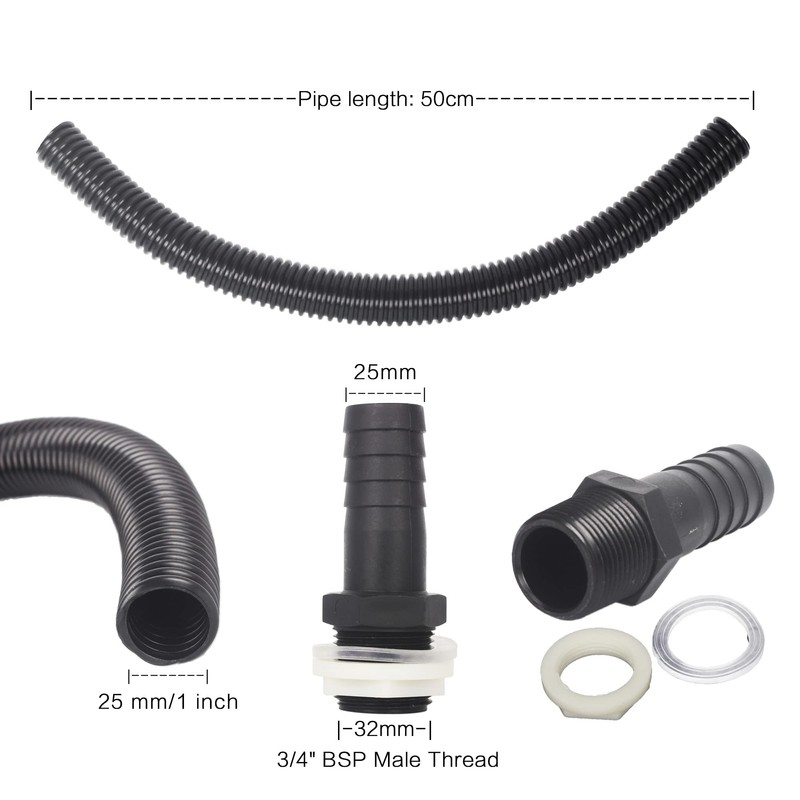 - ★Easy to install★ First, make a hole of 28-30mm diameter in the barrel. Then, insert a threaded tip into it and screw the nut on. After that, attach a 25mm (1'') diameter hose