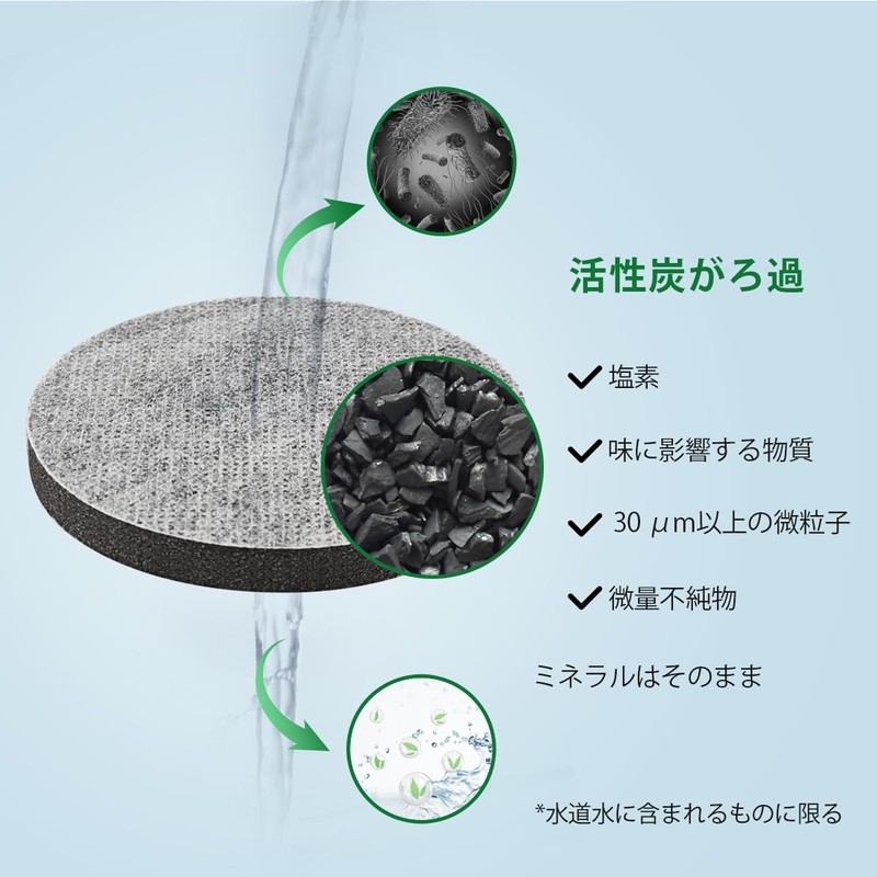 - 【Safe Material】Natural activated carbon made from palm shell to filter fresh and delicious water: √ Chlorine and other substances that affect the taste. √Trace impurities such as pesticides, herbicides, environmental hormones √More than 30um particulates