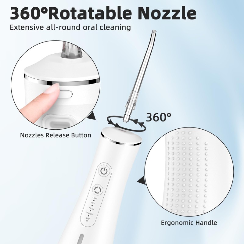 - 【300ML Water Tank & IPX7 Waterproof】Water flosser With 300ML detachable water tank,it ensures uninterrupted teeth cleaning, sufficient for your normal dental cleaning needs.Upgraded IPX7 waterproof standard achieves internal water-electricity separation and enhancing waterproof performance and durability.