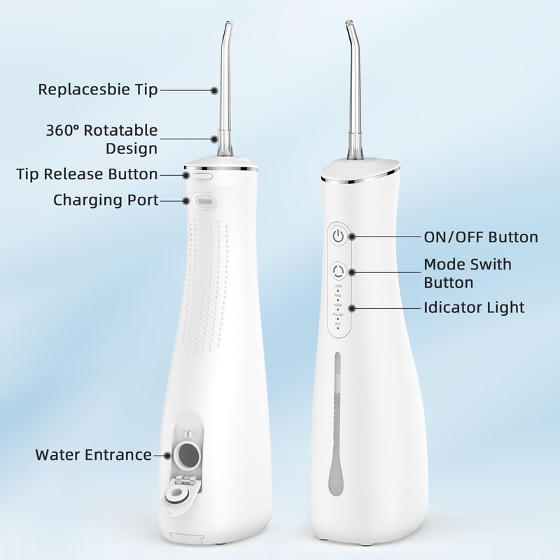 - 【Long Battery Life & Portable Design】Water flosser With 1500mAh powerful battery, come with Type-C Cable (adapter Not Included), fully charged need 4 hours and used continuously for about 50 days. This water flosser is perfect for home, travel, office or business use, it's ergonomic handle is very easy to hold.
