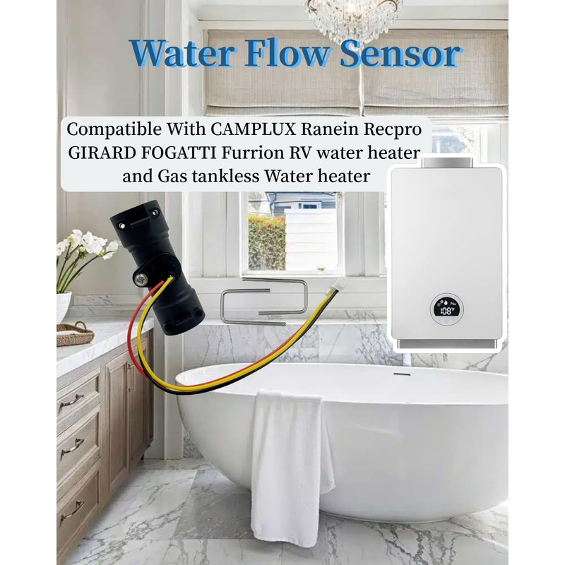 Water Flow Sensor Fits Camplux, Ranein, Recpro, Girard, Fogatti, Furrion RV Gas Tankless Water Heater with Installation Accessories