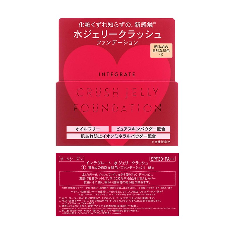 - 【水ジェリークラッシュファンデーション】1 やや明るめの自然な肌色。SPF30 ・ PA++。