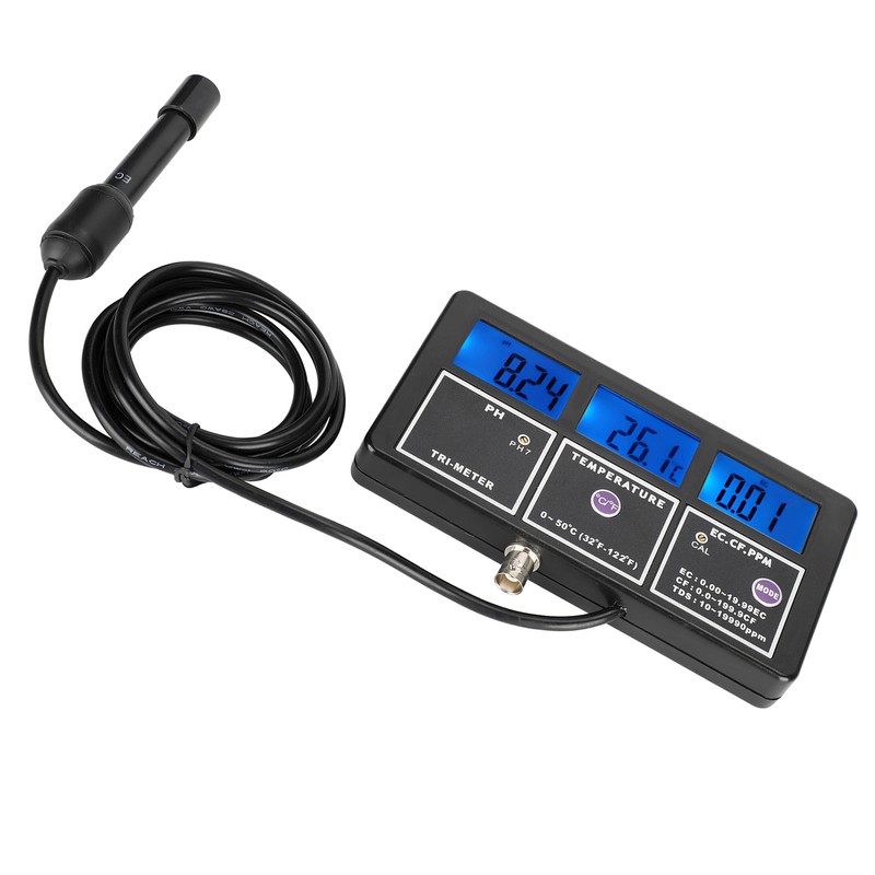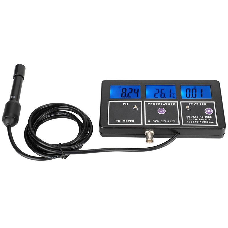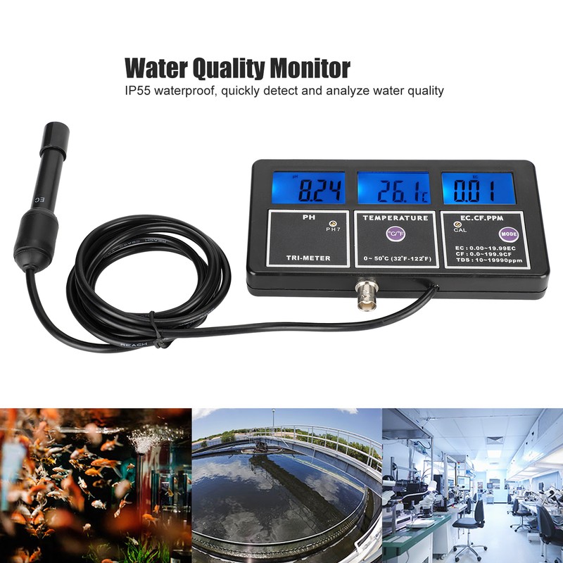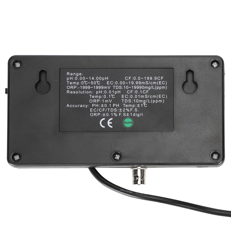 1、Water quality monitor with 3 display screens, which can be displayed simultaneously. 2、Support multi‑parameter measurement and monitor PH, EC, CF, TDS, temperature at the same time. 3、Equipped with BNC composite electrode, high measurement accuracy, easy to install and replace. 4、Water quality testing tool, supports wall-mounted installation, easy to operate and maintain. 5、With a silicone protective cover, IP55 waterproof and dustproof, long service life.
