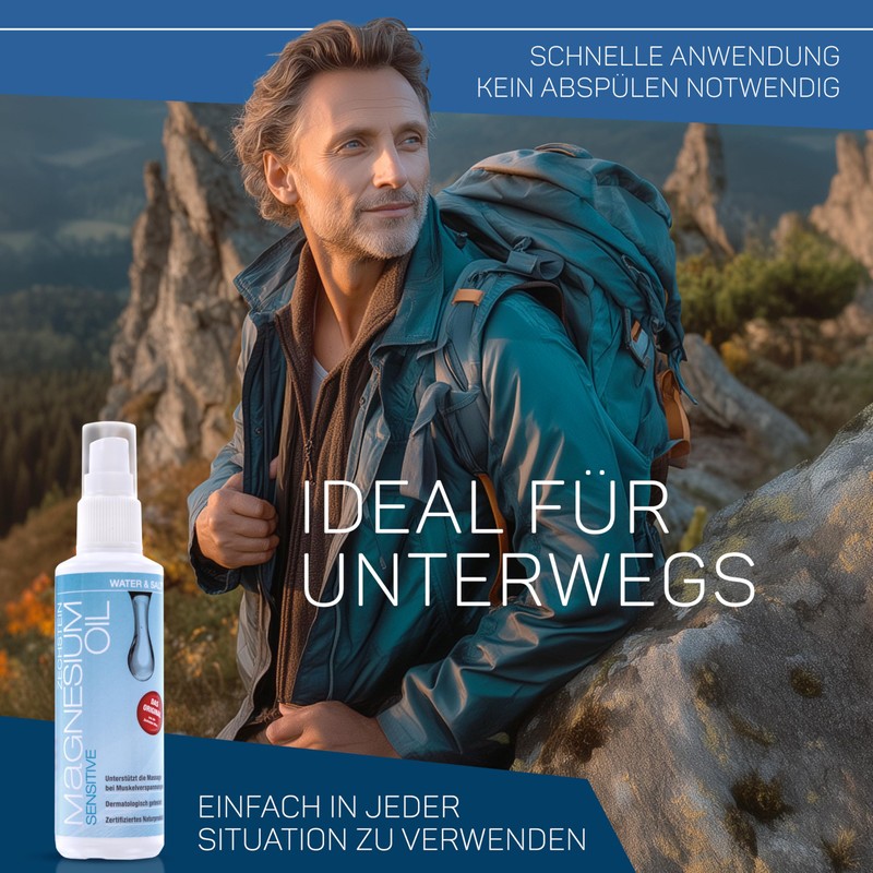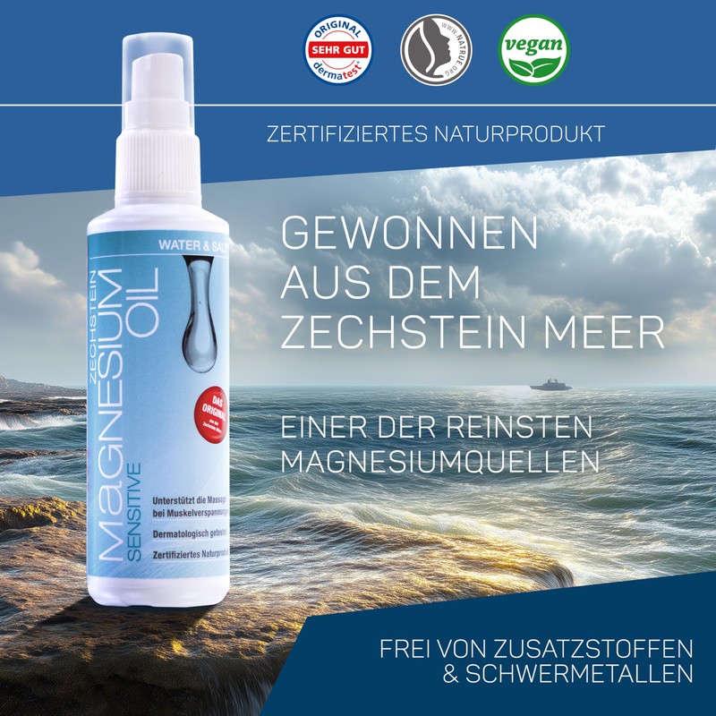 - Spray 10-20 sprays directly onto the skin and massage evenly. It is possible to apply several times a day if necessary. Magnesium oil is ideal for athletic fitness massages after sports, muscle tension and skin care. It is possible to leave the solution on the skin or wash it off with water after about 15 minutes.