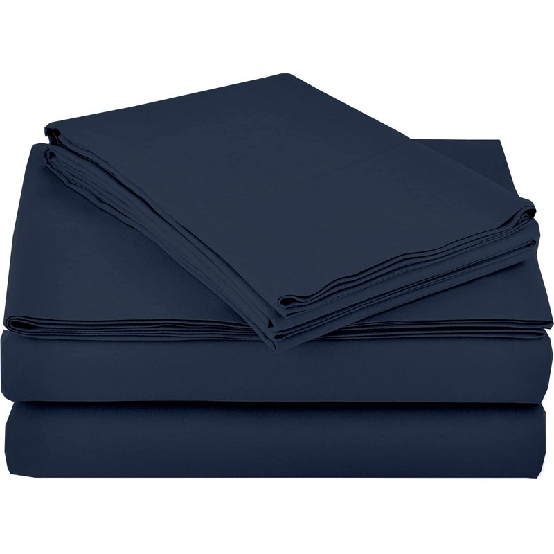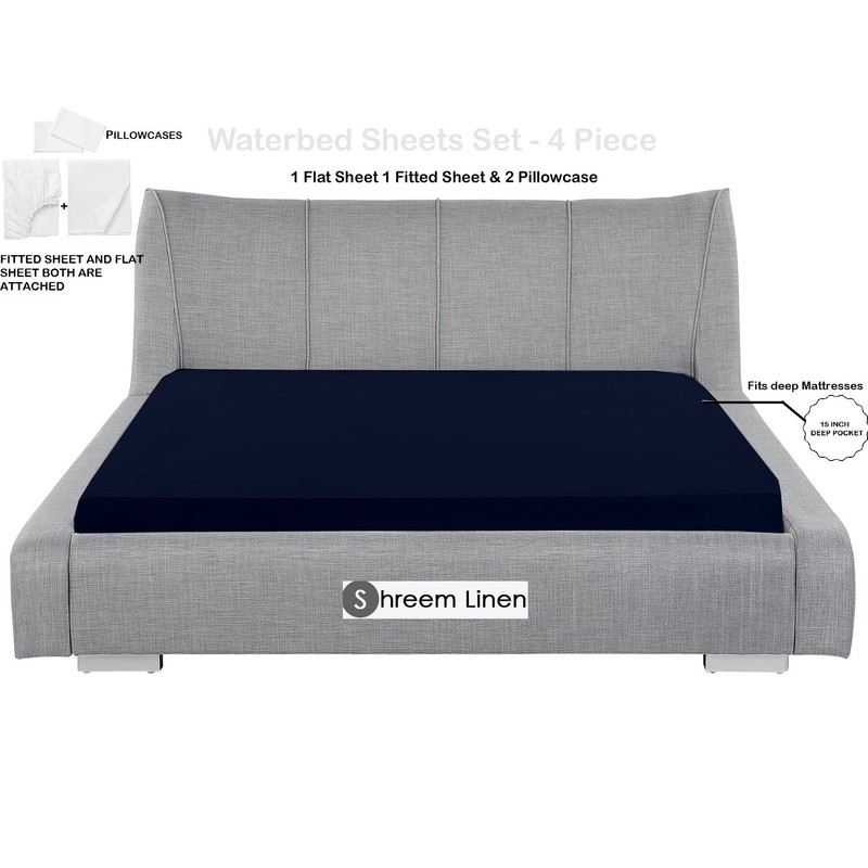 Waterbed Sheets California King Size Attached Waterbed Sheets 100% Egyptian Cotton 600-TC 4 Piece Sheet Set 15" Deep Pocket Attached Sheet Set in Solid (Navy Blue, California King)