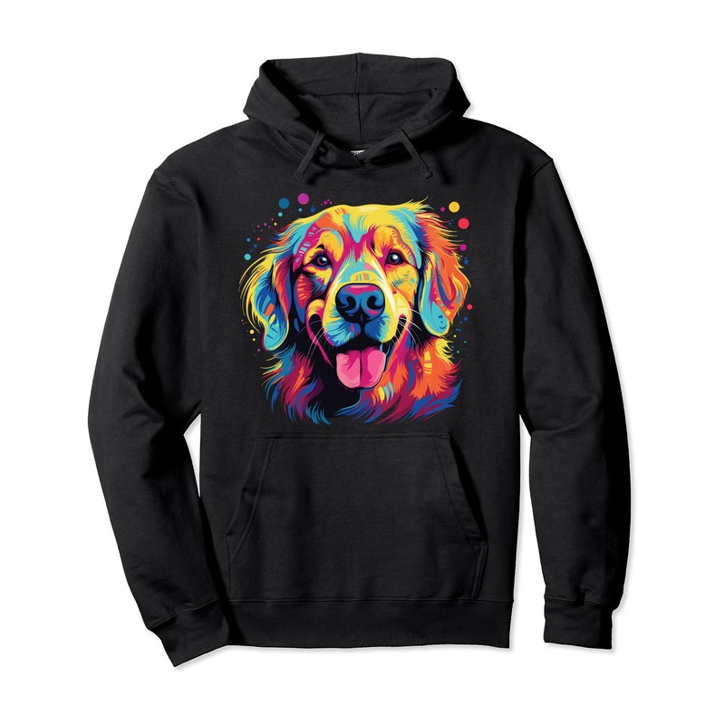 Watercolor Colorful Golden Retriever Dog Pullover Hoodie
