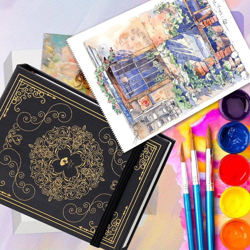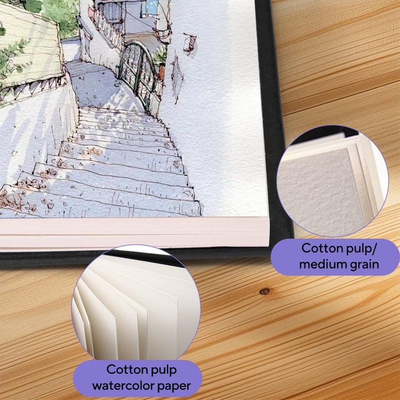 - 【Convenient Watercolour Paper with 3 Brushes】:Designed for portability, the Cold Press Watercolour Journal includes an elastic band on the back cover to keep the Travel Watercolour Sketchbook closed and secure, ensuring your art stays protected.