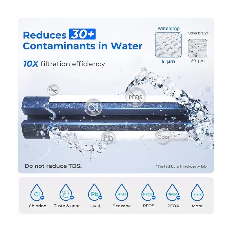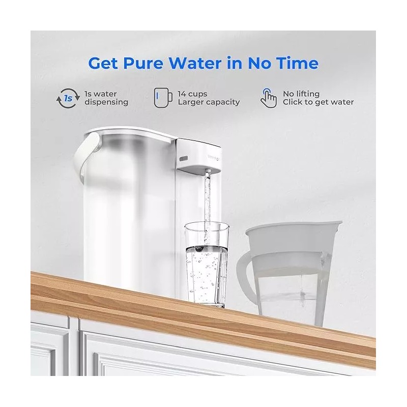 - [Elevated Water Purification Experience] With its electric design and user-friendly one-key control, this Compact water filter pitcher enhances your water purification experience, offering benefits such as larger capacity, quicker filtration, fresher water, timely usage, and more intelligent, easier operation. Instant filtration facilitates 1-second water dispensing, reducing waiting time, while the one-key control eliminates the need for heavy lifting, providing a more convenient user experience.⚡This system DOES NOT lower TDS value. If you prefer low TDS value, please choose Waterdrop RO system.⚡