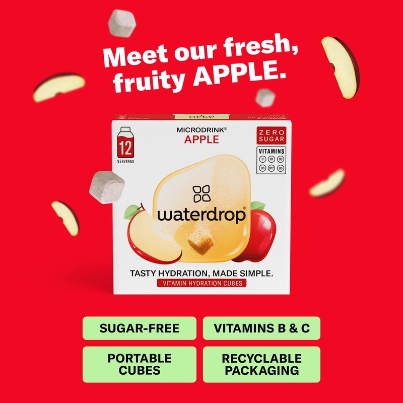 Waterdrop Hydration Cubes with Vitamin C, B3, B5 & Electrolytes, Apple Flavor, Flavored Water Enhancer Electrolyte Cubes for Still & Sparkling Water, Sugar Free, Low Calorie, On the Go, Vegan, 24 Ct
