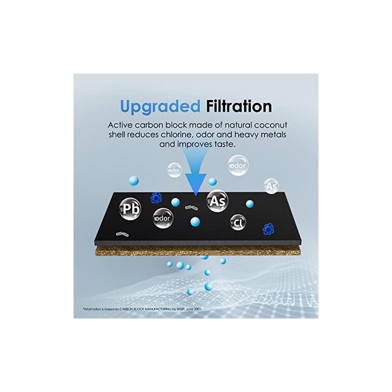 - 【Verbesserte Filtrierung】 Der CT-Filter ist von der WQA gemäß NSF/ANSI 42 Standards geprüft und zertifiziert und kann Chlor, schlechten Geschmack und Geruch effektiv reduzieren, wodurch der Wassergeschmack verbessert wird. Zusätzlich verhindert KDF das Wachstum schädlicher Verunreinigungen und sorgt so für ein sichereres und saubereres Trinkwasser. [1]