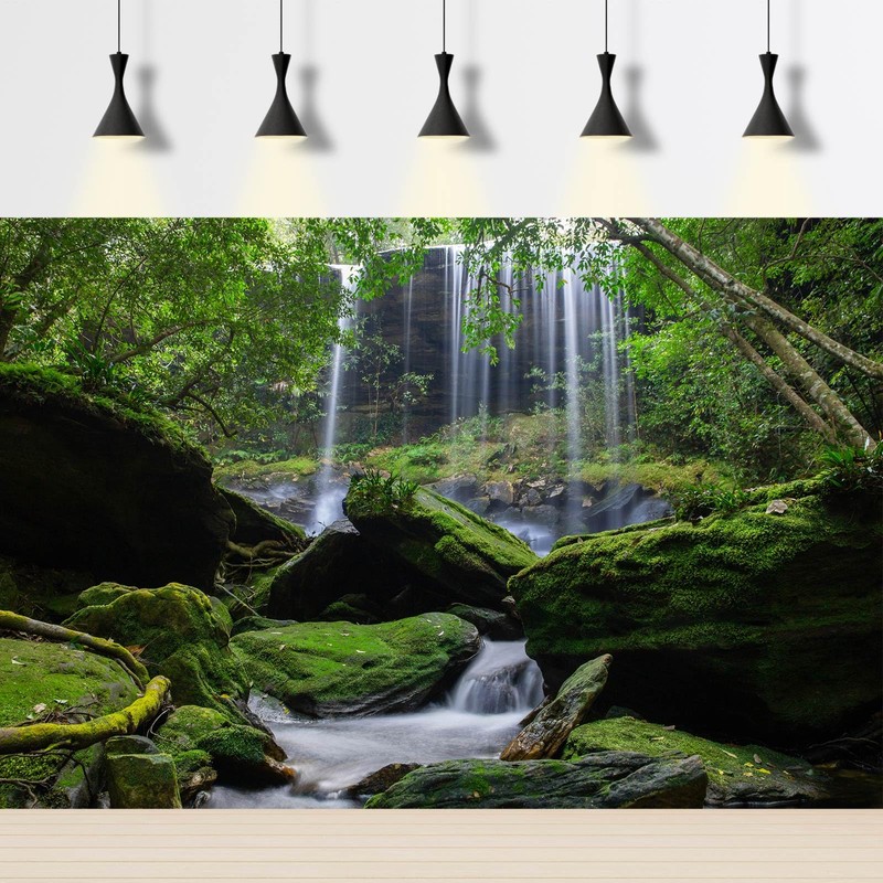 Waterfall Aquarium Background Jungle Forest Stream Landscape Terrarium Backdrop Tropical Plants Rocks with Lush Moss Fish Tank Background Jungle Reptile Habitat Background Poster Vinyl 36x18in
