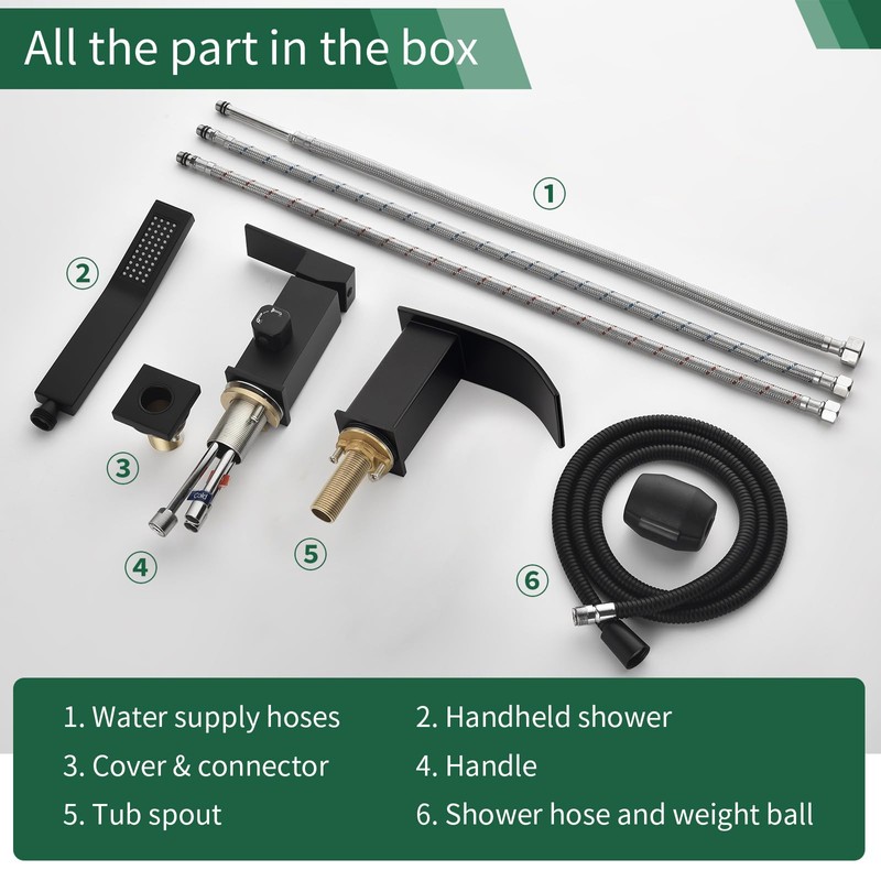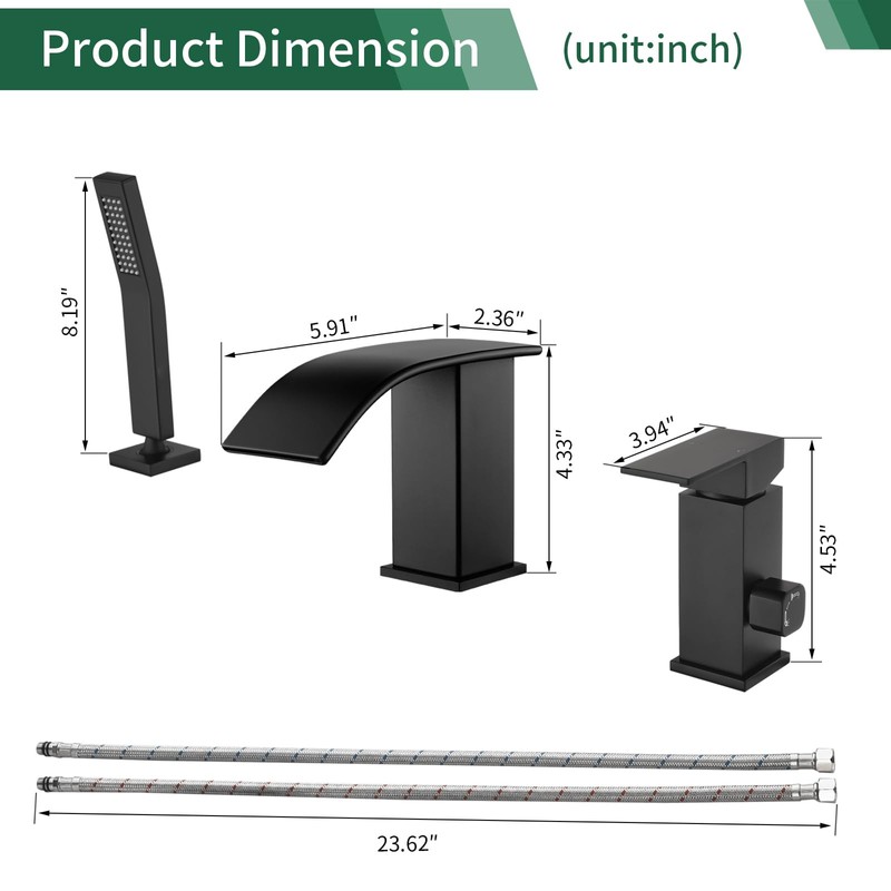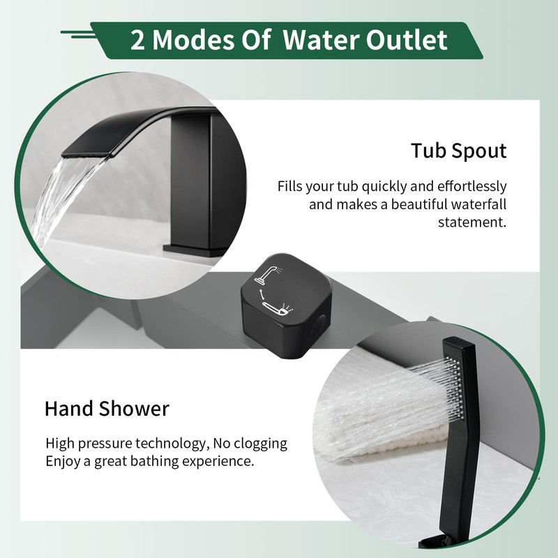 - 【Single Handle Design】 Single handle easy to control hot water and cold water which is the best choice for bathtub; Just simply rotate the lovely square knob to switch water to hand shower or waterfall spout