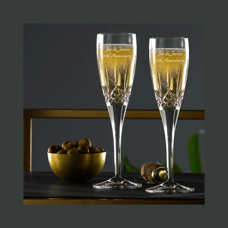 Waterford Personalized Lismore Nouveau Wedding and Anniversary Champagne Flutes, Set of 2 Custom Engraved Cut Crystal Champagne Glasses for Bride and Groom