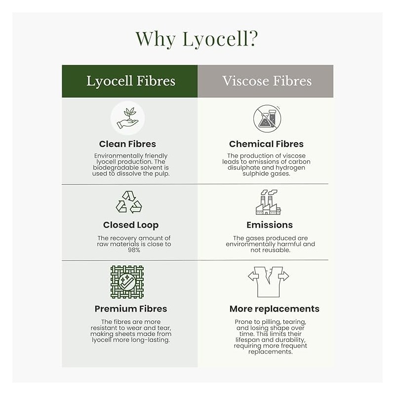 - BAMBOO LYOCELL is made from pure raw organic bamboo, free from harmful chemicals, unlike bamboo viscose/rayon production which is highly toxic and polluting. Thus, Bamboo Lyocell is better, more sustainable, ethical and eco friendly material than bamboo viscose/rayon from which most of the bamboo bedding is made