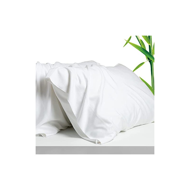 Waterlily 100% Bamboo Lyocell Pillow Cases Pack of 2 Pillowcase for Hair and Skin Envelope Set 50x75 Natural Organic Soft Vegan Silk Luxury Bedding (White)