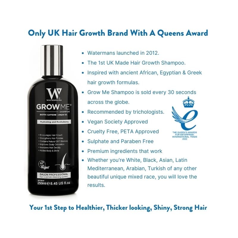 - YOUR NEW UPGRADE: Unlike typical wash-and-go shampoos, Watermans Grow Me Hair Growth Shampoo is designed for optimal effectiveness. For best results, leave it on your scalp to allow the superior ingredients to penetrate deeply, targeting the hair follicles and delivering essential nutrients precisely where they are needed most, as recommended by trichologists, to help you grow strong hair.
