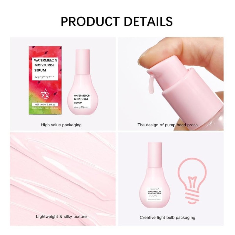 • Watermelon Moisturizer Facial Serum even out skin tone, brighten dullness and minimize pores, to visibly & effortlessly brighten skin.