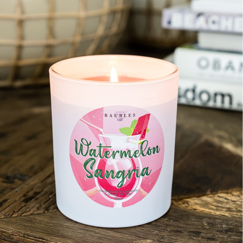- Watermelon Sangria is a luxurious surprise jewelry candle that will bring a touch of elegance to your home. Filled with the irresistible scent notes of rose, violet and musk, this carefully crafted candle will fill your space with a warm and sweet aroma. As the candle burns, you'll be delighted to find a stunning surprise jewelry piece inside, creating a special moment of excitement. The perfect gift for a loved one.