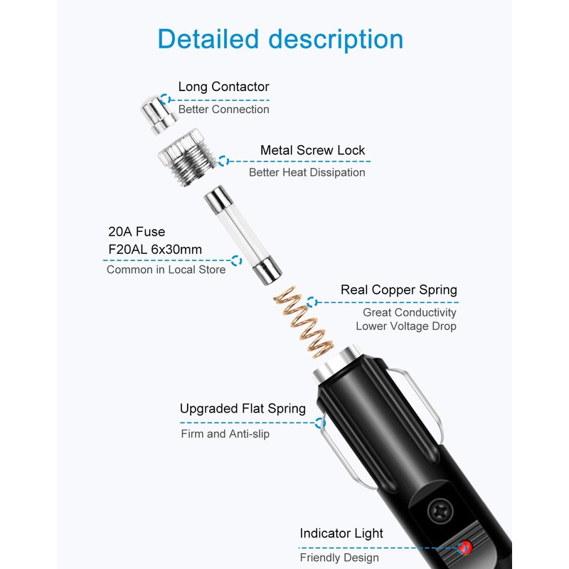 - 𝐍𝐨𝐭𝐞: The AC plug and cigarette lighter male plug are not waterproof, please keep them dry.