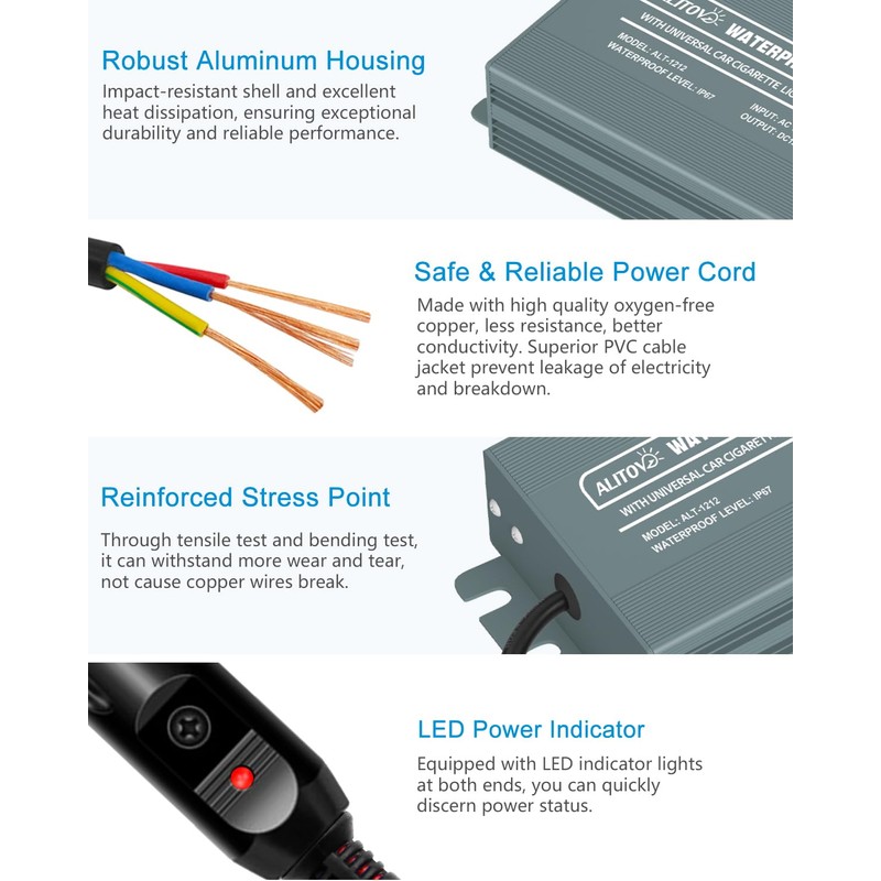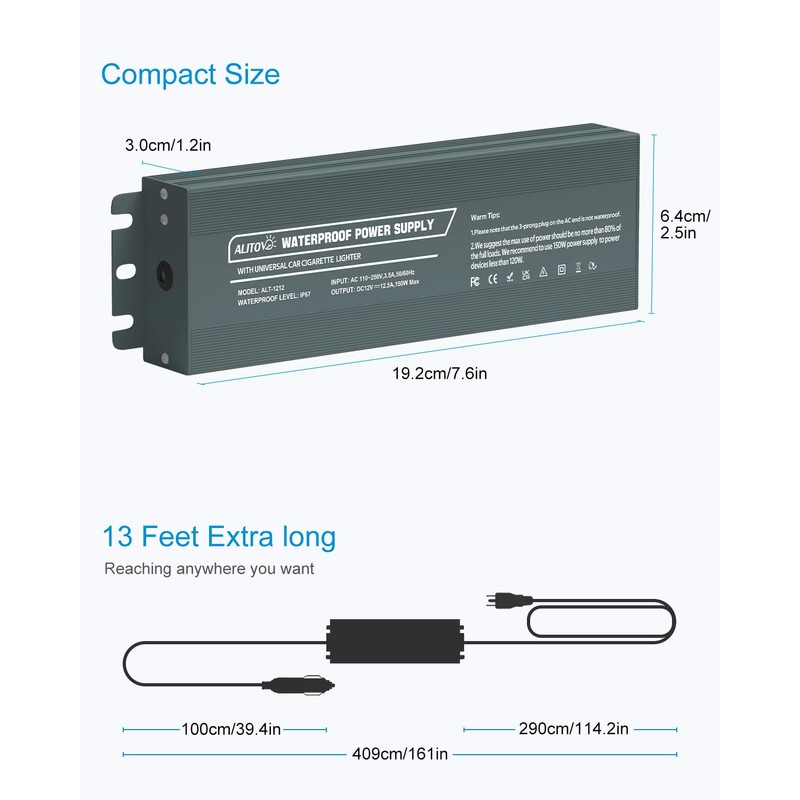 - 𝐈𝐏𝟔𝟕 𝐖𝐚𝐭𝐞𝐫𝐩𝐫𝐨𝐨𝐟 & 𝟏𝟑𝐟𝐭 𝐋𝐨𝐧𝐠 𝐂𝐚𝐛𝐥𝐞: Considering that the actual application scenario is outdoors, we specially made the adapter shell waterproof. And with super long 13 feet design, enjoy convenience and flexibility wherever you need it.