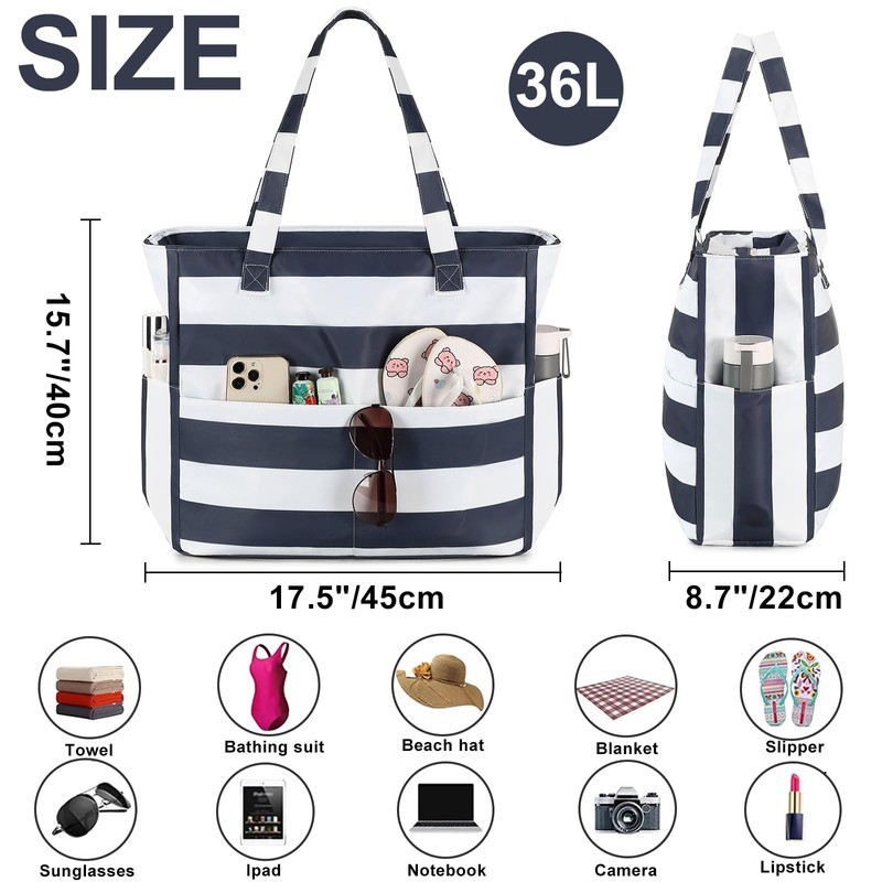 - BLUBOON beach tote bag -- Large beach bag in size 17.5*7.87*15.75 inches for women ladies to go to beach or pool, with smart design wet compartment to hold dirty clothes and wet towels after sports