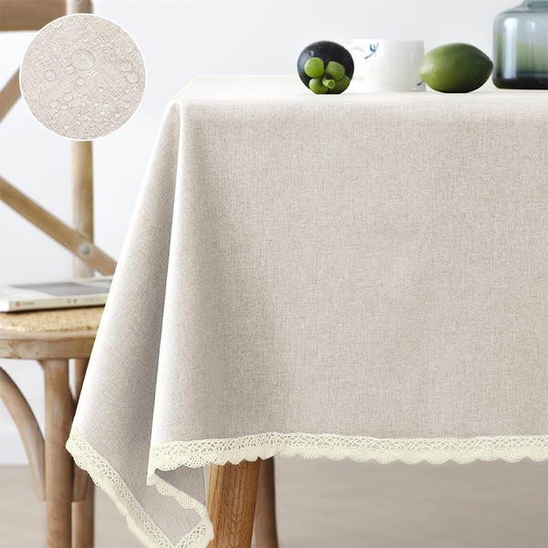 Waterproof Cotton Linen Tablecloths Rectangular for Dining Room, HADEEONG Rustic Farmhouse Table Cloth for Room Decor, Dining Table Cover Protector, Beige, 55" X 70", 4-6 Seats