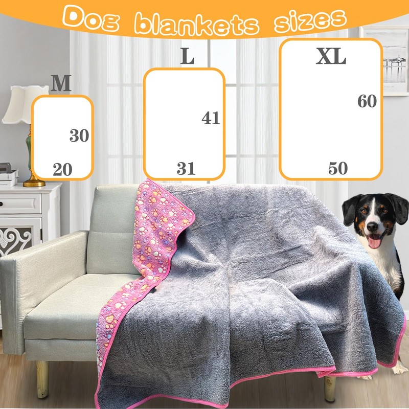 Waterproof Dog Blankets for Large Dogs, 41" x 31" Dog Blanket Washable, Soft Fluffy Flannel Pet Blanket Mat Cover for Bed Couch, Cute Print Puppy Blanket
