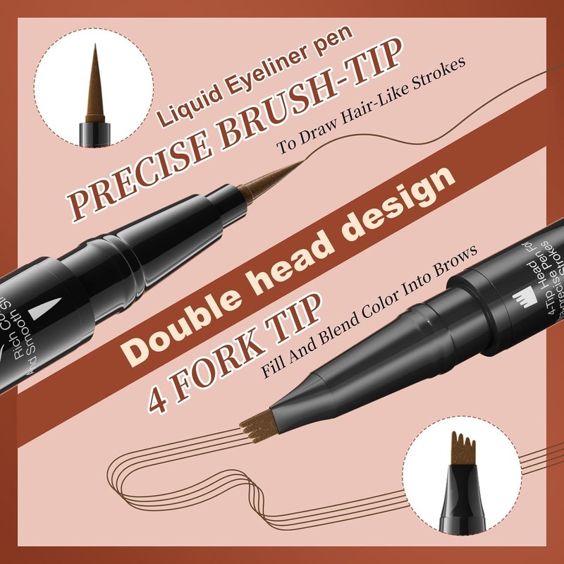 - 【Magical Dual-ended Brow Pencil】: XFRoad innovative 2-in-1 dual-ended brow pencil with 4 tip microblading eyebrow pen, Four forked heads can fill sparse areas, and it has precise brush heads that can create small hair like strokes,It’s long-lasting, smudge-proof, and waterproof.