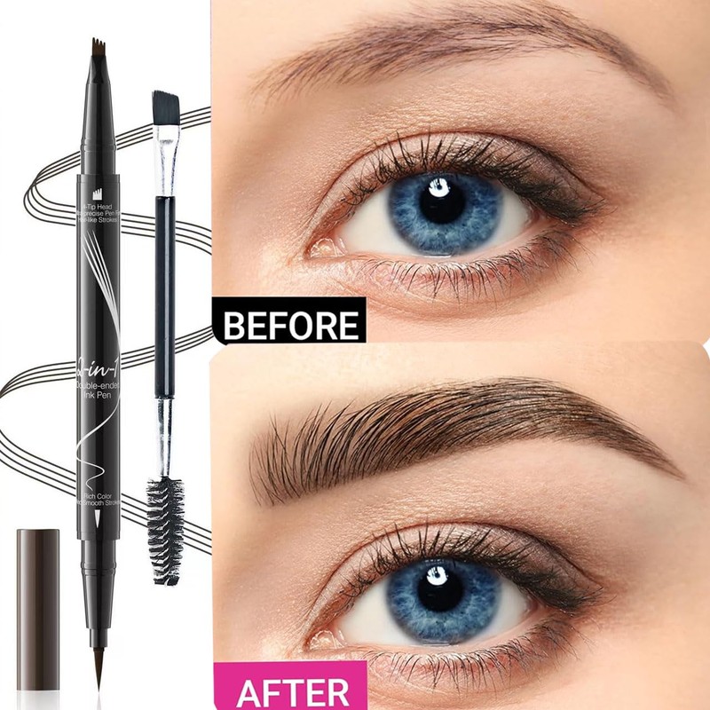 - 【Outline Eyebrows With Precision】: Eye brow pen has 4 shades to match all skin tones,light brown, dark brown, grey, black! no tricks required and beginner friendly! Our dual-tip waterproof eyebrow pencil brush makes it easy to draw, shape and define brows.