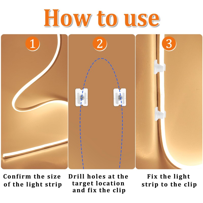 - Easy to Use: The transparent fixing clips are ultra-thin and beautiful in appearance. You can install it anywhere you can fix screws, it can be easily fixed without effort, and it is recommended to use 3-6 for 1 meter light strip. Be careful when using it at the same time to avoid hurting your fingers and neon light strips.