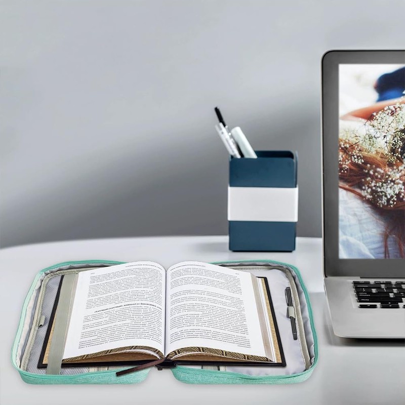 • 【Spacious and Multi-functional Storage】Designed to fit Bibles up to 28 x 22 x 6 cm, this case includes multiple pockets and pen loops for storing highlighters, bookmarks, notebooks, and even an iPad. It doubles as a tote bag, makeup bag, or tablet case for versatile organization
