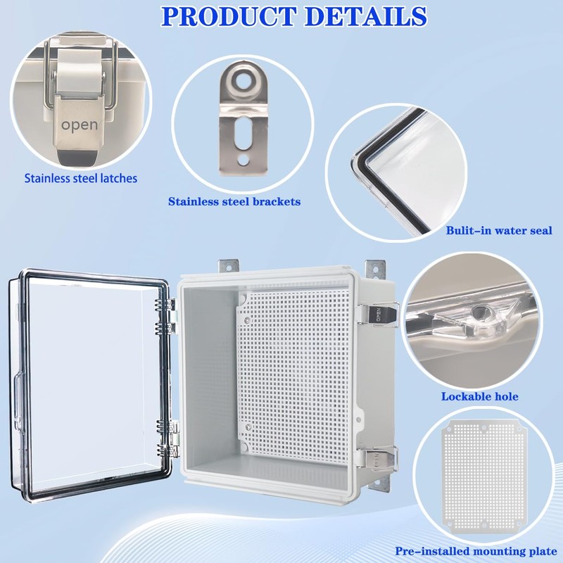 - SIZE - Outer Size of electrical enclosure:8.27" x 8.27" x 5.12"