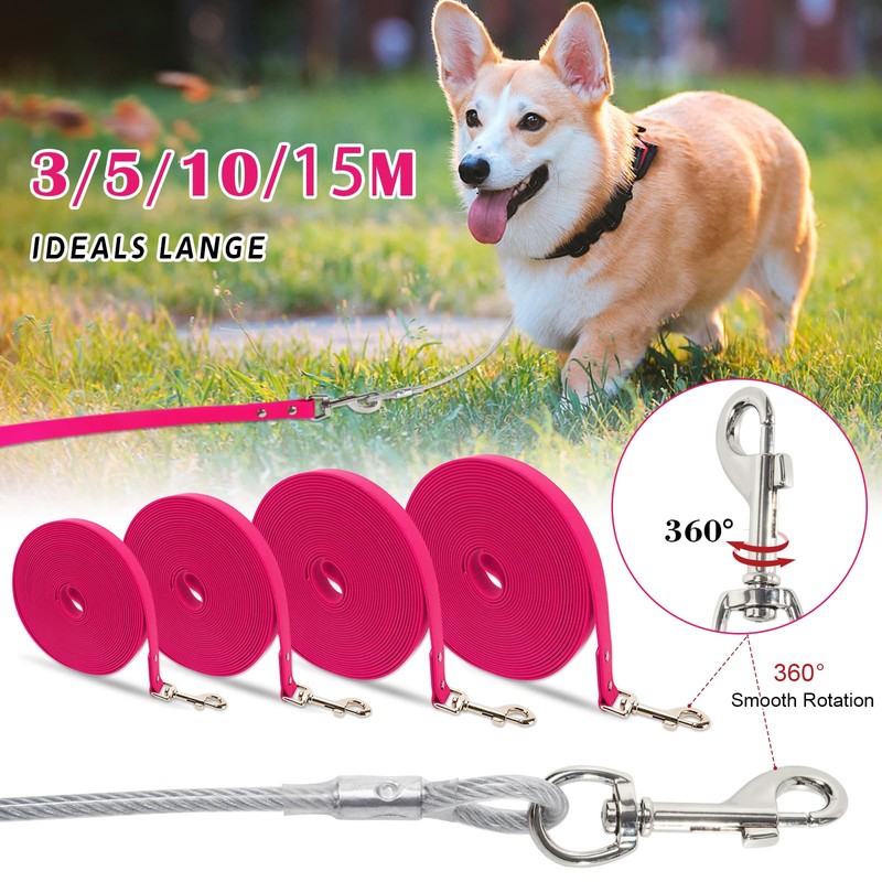 Waterproof Recall Lead for Dogs, with Chew Proof Tie-Out Leads, 3-30 m, Waterproof Training Lead for Large to Small Dogs, Robust Dog Lead (Rose, 3 m)