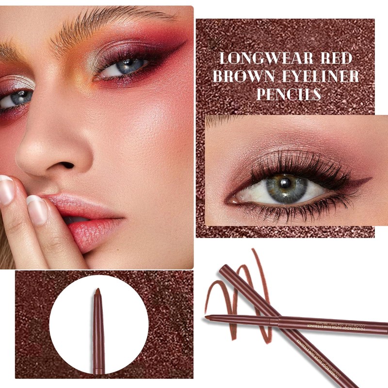 Waterproof Red Brown Gel Eyeliner Pencil – Long-Lasting & Smudge-Proof, Highly Pigmented, Smooth Glide, Ultra-Fine Tip, Easy to Use, Ideal for Natural or Bold Eye Looks, Travel-Friendly