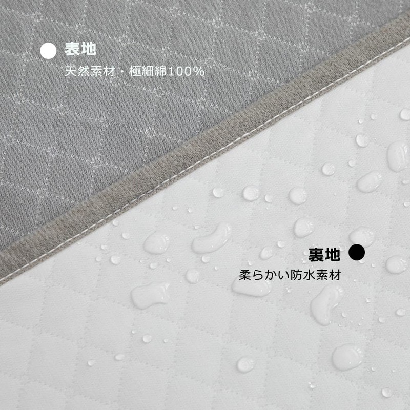The side fabric is made of high quality cotton. It has excellent breathability and moisture absorption, and is gentle on the skin. This pad is waterproof but because it is made of cotton material, it is soft to the touch, so it can be used comfortably as a regular pad. In addition, it has been treated to be antibacterial and deodorized, so it can be used safely even for those with sensitive skin - Waterproof Function: The back is made of waterproof material that is treated to prevent water and liquid from penetrating through. This material can protect underneath sheets and mattresses. Although it is waterproof properly, it is breathable and will not get stuffy in the summer. It also has excellent stain resistance, stain resistance and is easy to clean. Because of this, it is widely used for changing diapers and nursing care for babies and small children. The waterproof material is soft and does not produce a crinkling sound like regular waterproof sheets and provides a quiet sleep every day