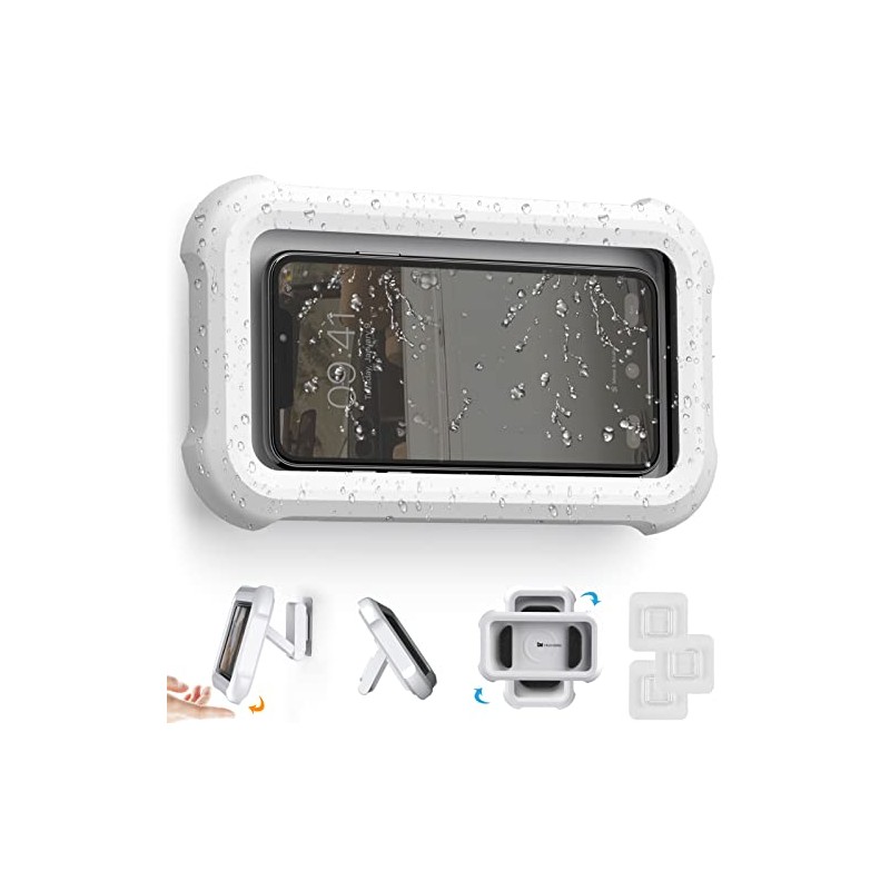 - 📱【Waterproof and Anti-fog】: The shower phone holder is made of high quality ABS, EVA and other friendly materials. Featuring a double-layer waterproof construction with an internal waterproof strap design and full wrap-around storage, it is impervious to water vapour and shower splashes. Note that it is forbidden to completely immerse the product in water.