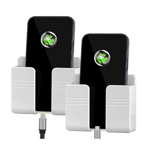 - SPECIFICATIONS: Package includes 2 white wall-mounted phone holders, each measuring 9.5 cm x 7.8 cm, perfect for modern home organization