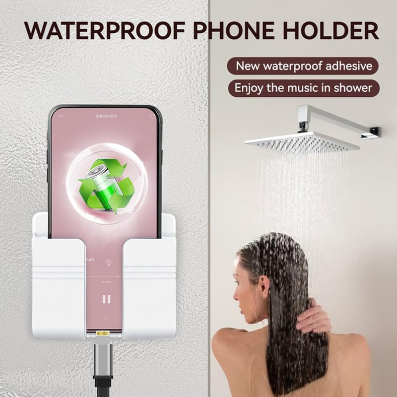 Waterproof Wall Mount Phone Holder, Multi-Purpose Phone Stand with Charging Port, 9.5 cm x 7.8 cm, White, 2-Pack