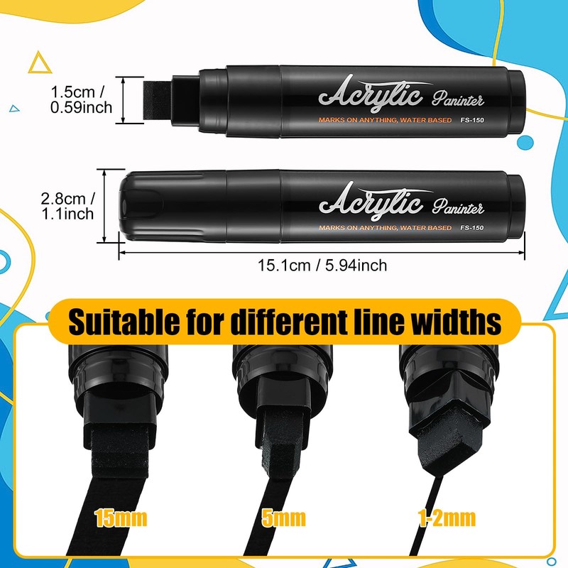 - Rich in Quantity: the package contains 8 black acrylic paint markers, enough to meet your daily needs The nib marker can draw a 15mm line with a wide pen head, bright colors and strong covering power