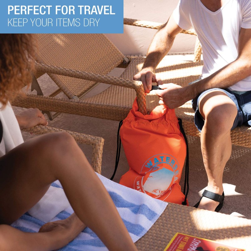 - Roll-top closure: this travel bag has a roll top Cinch closure that protects your electronics and wallet from sand, dust, debris and More. A must have portable Safe for camping, hiking, or traveling